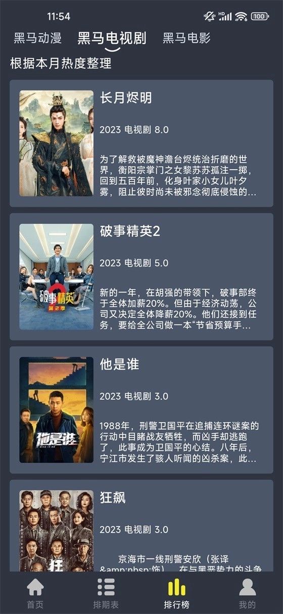 还在为找不到优质的电视剧而发愁吗?还在为每日的观影选择而犹豫不决吗?不妨试试这款名为黑马视频的应用吧!这里汇聚了《狂飙》《长月烬明》等众多热门影视资源,更重要的是,它提供全程的高清流畅观看体验,让你沉浸在舒适的追剧氛围中,绝对是追剧爱好者的不二之选。