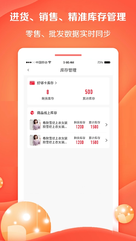 1、“好邻好物进销存”具备全方位的库存管理能力,用户能够便捷地跟踪库存的数量、存放位置与状态情况,保证库存信息能够实时精准呈现。