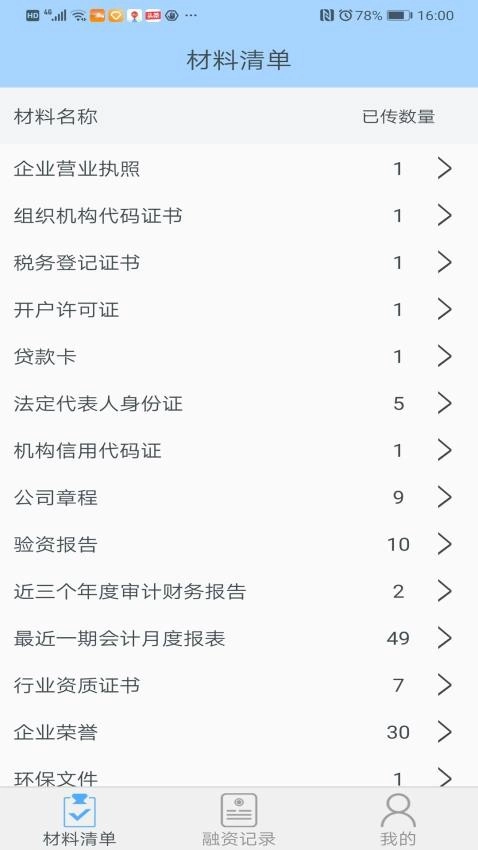 2、打开应用即可查看材料清单详情,还能快速上传资料。
