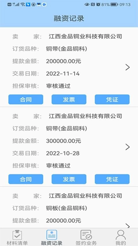 在应用内就能查看融资相关的合同、发票与凭证,确保每笔融资安全可靠,使用起来也更便捷。