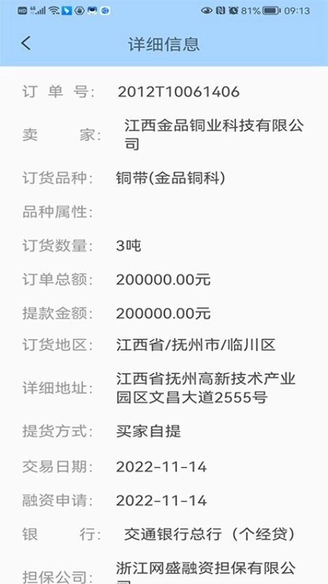 3、查看详细信息,了解订单号、订单品种、数量、时间等内容;