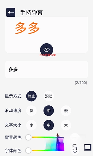 2、在这个界面里,你可以按照自己的喜好调整文字、背景、颜色以及其他细节,调整完成后,点击上方的按钮就能查看效果了。