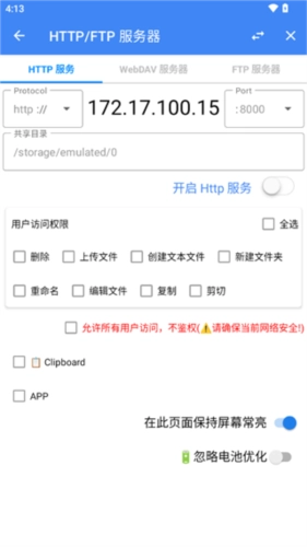 5. 服务器设置:支持自行搭建HTTP/FTP服务器或WebDAV服务器,以此实现与电脑及其他设备的连接和文件传输功能。