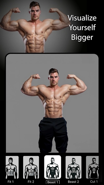 2、上传对应照片后,选择底部的增肌滤镜,不同滤镜将生成不同效果的健身风格画面。
