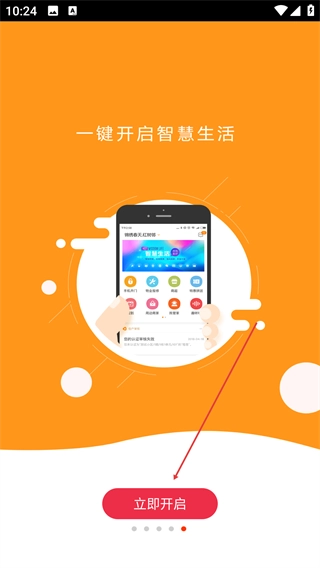 1、在引导页面点击【立即开启】按钮,进入该智慧生活类应用的后续流程。