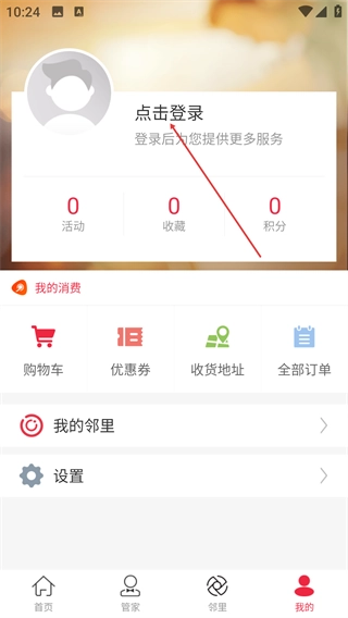 2、在【我的】页面点击【点击登录】选项,进入账号登录界面以解锁更多服务。