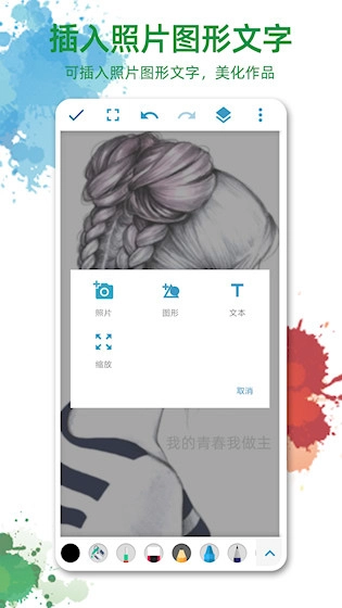 2、颜色选择: 拥有一个全面的颜色选择器,不仅包含基本色彩,还有调色板功能,允许混合不同的颜色以创造出独一无二的新色调。