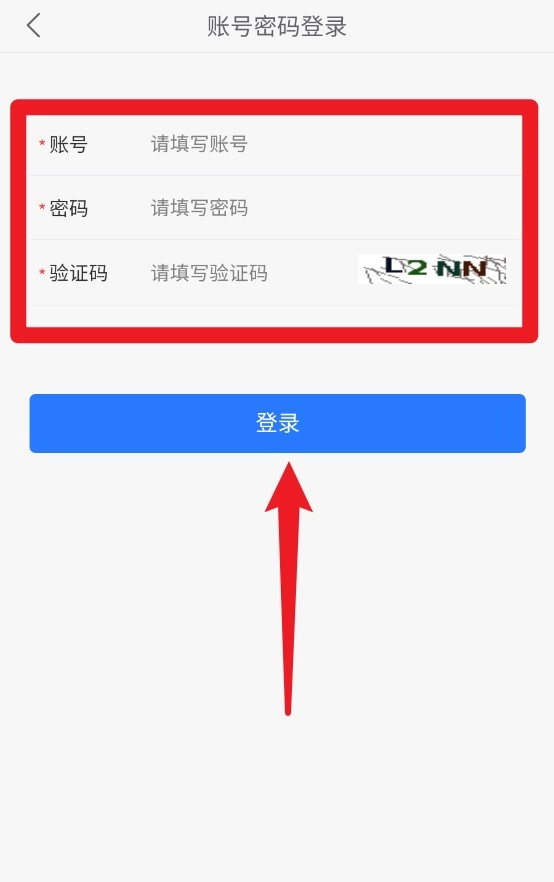 2、选择账号密码登录,输入账号、密码和验证码后,点击下方蓝色按钮完成登录操作。