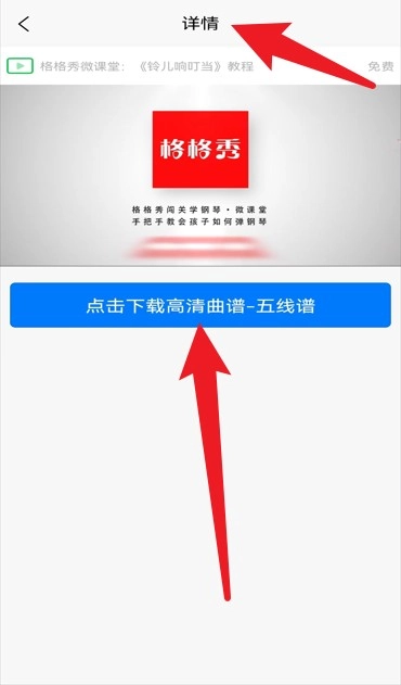 5、点击任意课件进入详情页后,点击蓝色按钮即可该曲目的高清五线谱曲谱文件。