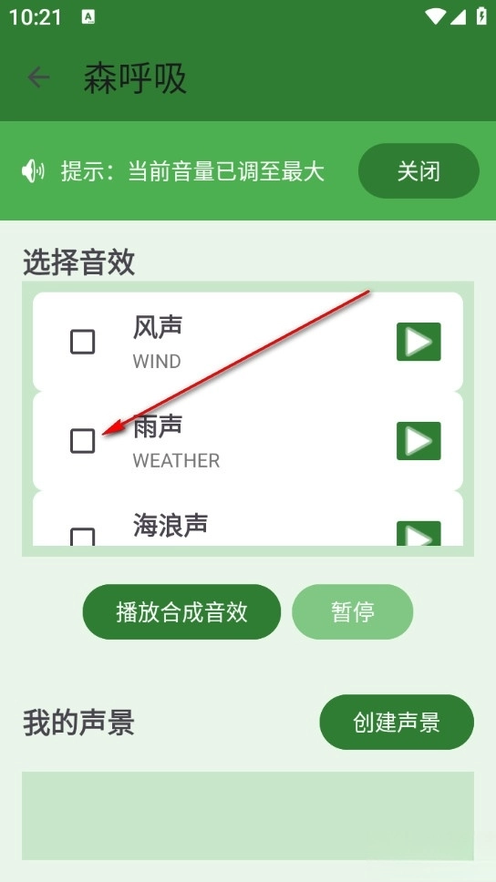 5、能够自由搭配各类音效,调节音量大小,打造专属于自己的放松氛围;