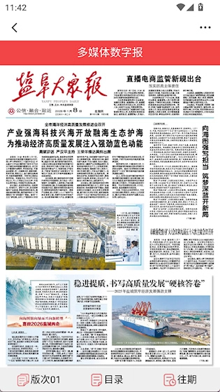 2、通过下方按钮切换版次、查看目录和往期报纸