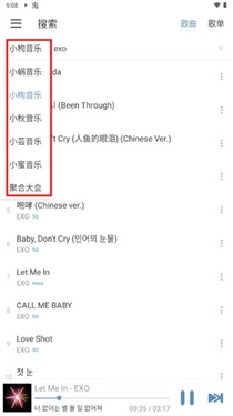 2、接着在搜索结果里点击想要播放的歌曲,等我们【播放完整首歌】后就能完成缓存,这样就算没有网络也能收听了。
