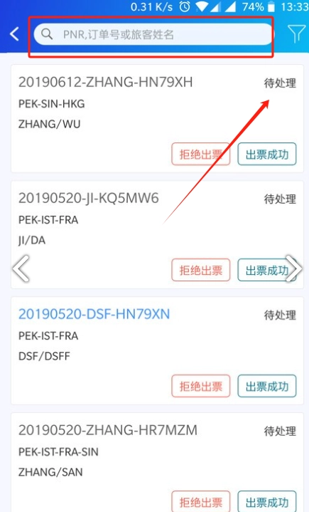 在订单管理界面中,可查看旅客的订单详情信息,以此了解出票情况。