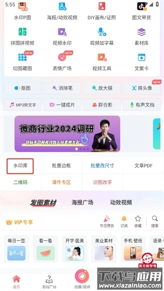 1、第一步是打开微脉水印相机应用,进入首页后找到并点击【水印库】选项;
