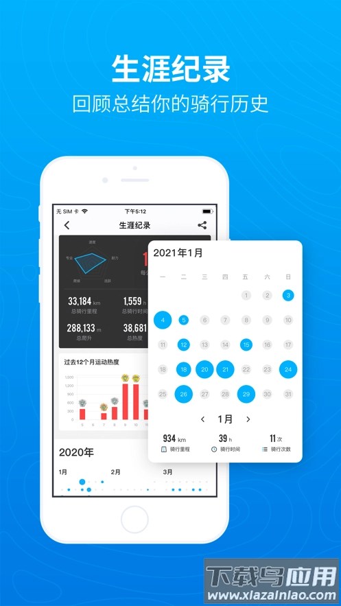 数据看板:可自动统计每周或每月的运动量,并生成速度、爬升等不同维度的对比图表。
