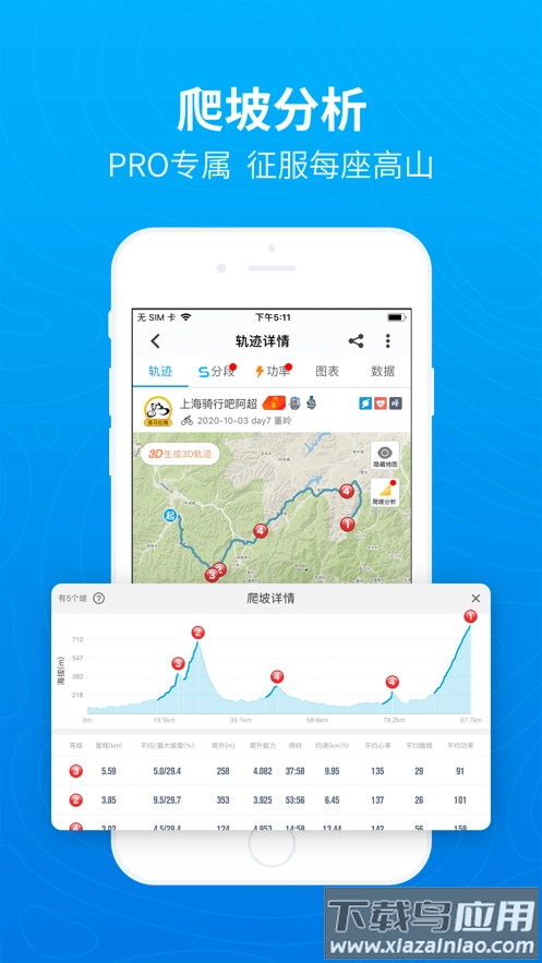2、创新打造坡度评级体系,搭配海拔曲线助力规划训练强度,历史数据能够生成可视化的分析报告;
