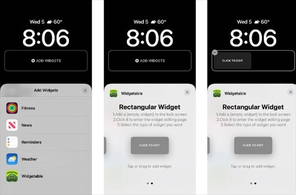 3、将自定义小部件添加到你的锁定屏幕
