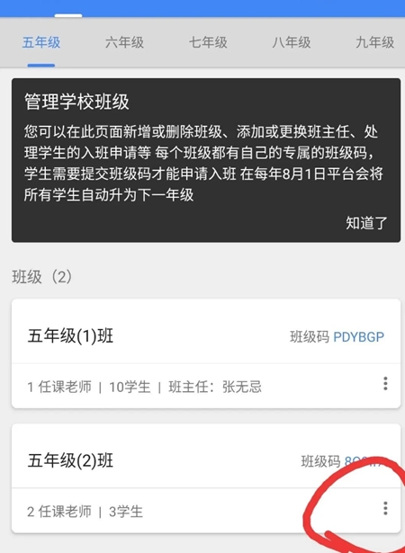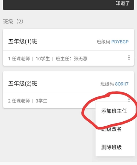 然后找到需要添加的班级,点击最右侧的“三个点”图标,添加该班级的班主任,具体操作可参考下图: