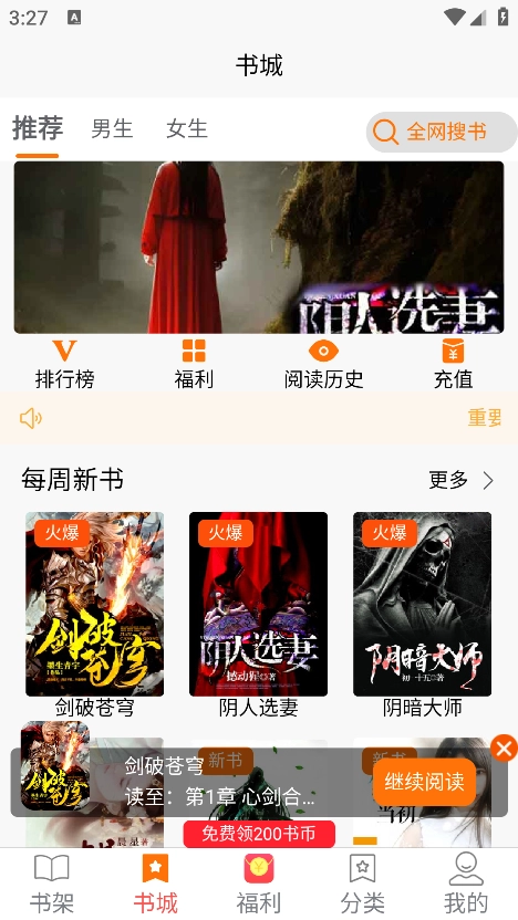 进入到书城能够看到各种题材的小说