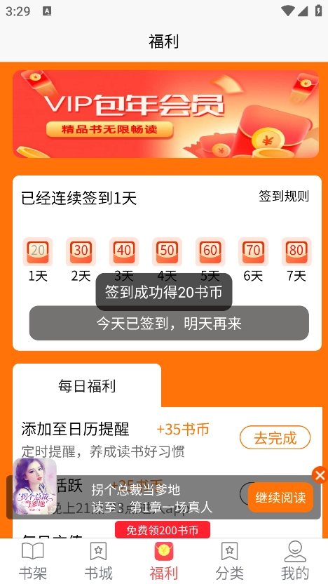 然后即可签到成功获得奖励