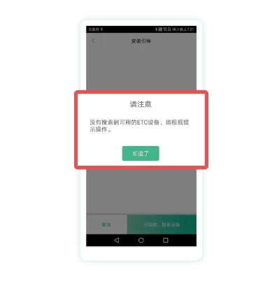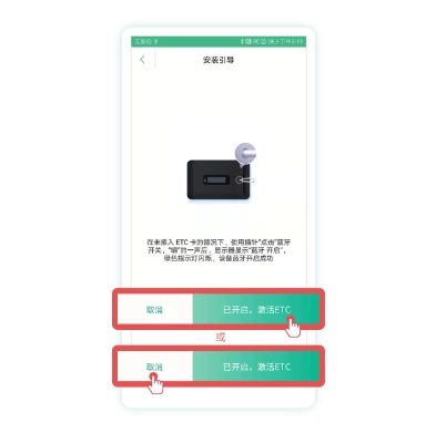 8、激活过程中若出现失败提示,可重启ETC设备的蓝牙开关。