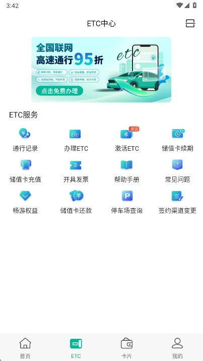 2、etc版块,用户可在此办理ETC业务并完成ETC设备的激活服务。