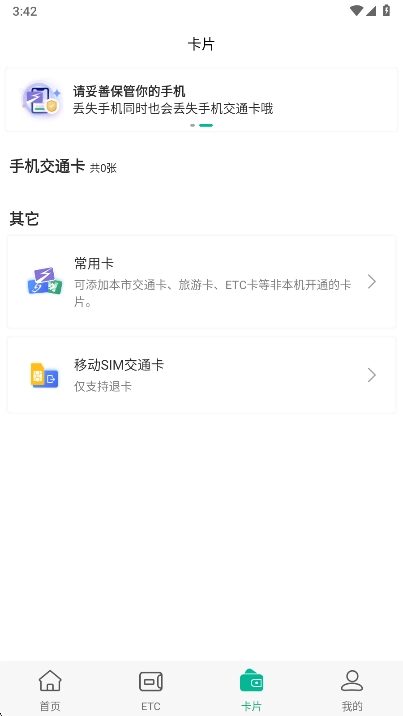3、还为大家打造了卡片专区,用户能够在这里对自己的卡片进行管理。
