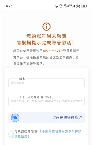 第2步:使用员工个人专属天翼账号验证登录。