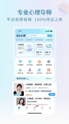 心理咨询师均为专业人士,能助力用户更深入地了解他们,从而获得所需的帮助。