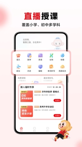 希望学是一个面向全国中小学生的在线学习辅导平台,涵盖中小学阶段的全部学科,可为学生提供优质学习资源,包括全学科名师直播课、练习题、知识点讲解等内容,从多维度助力学生学习提升,帮助大家实现成绩的稳步提高。