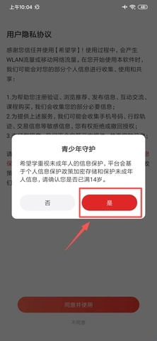 我们打开软件后,得在“青少年守护”这个选项这里选择“是”,否则就无法进入软件。