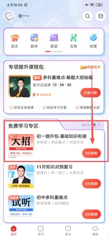 正式进入软件后,找到“免费学习专区”,就能在那里0元领取免费课程。