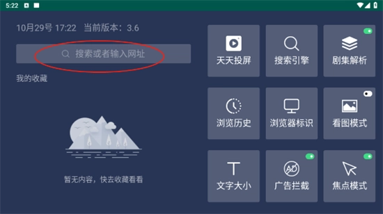 1. 于搜索框内输入关键词或网址内容,然后点击搜索。
