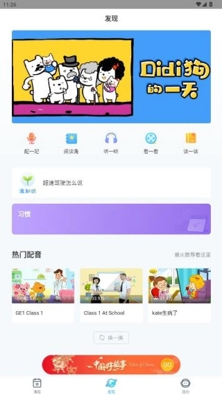 5. 助力学生自主学习。学生能够在自学板块通过英语配音的方式锻炼英语发音。