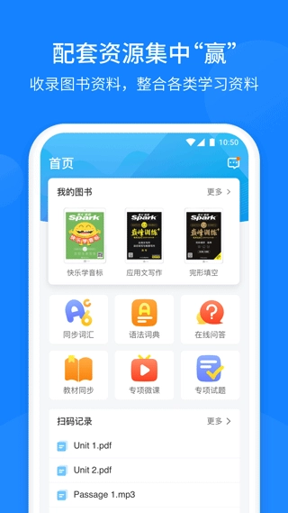 2、整合了丰富多样的自主学习资源库,其中包含多学科的学习资料与习题集,能够满足学生课外拓展学习以及巩固复习知识的需求。