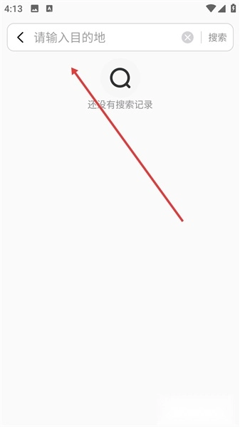 3、该应用的搜索页面支持输入目的地进行检索,当前没有搜索记录,用户能够输入新的目的地,点击搜索按钮来获取相关的路线及地点信息。