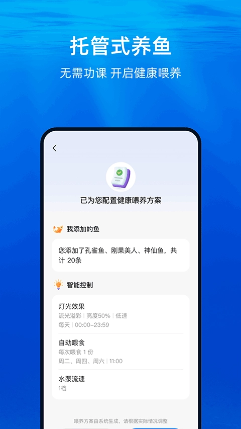 2、智能提醒服务:一旦出现水质异常、鱼食短缺等状况,系统会立即推送提醒信息。