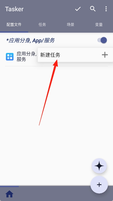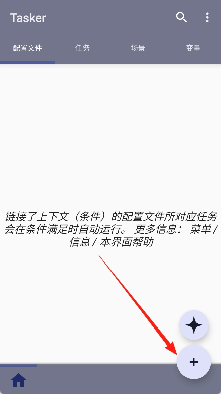 1、在手机上打开tasker软件,进入软件的主界面中。