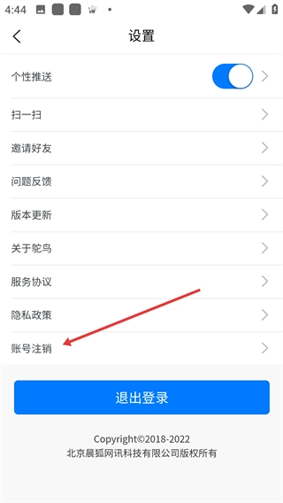 进入设置界面后,找到并点击【账号注销】选项,此时会弹出一个注销提示框。