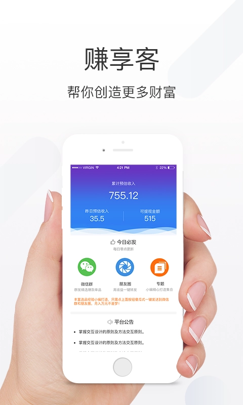 在分享经济蓬勃发展的当下,赚享客为用户搭建了一个便捷的创业平台,助力每个人都能成为分享能手,彰显自身的价值。