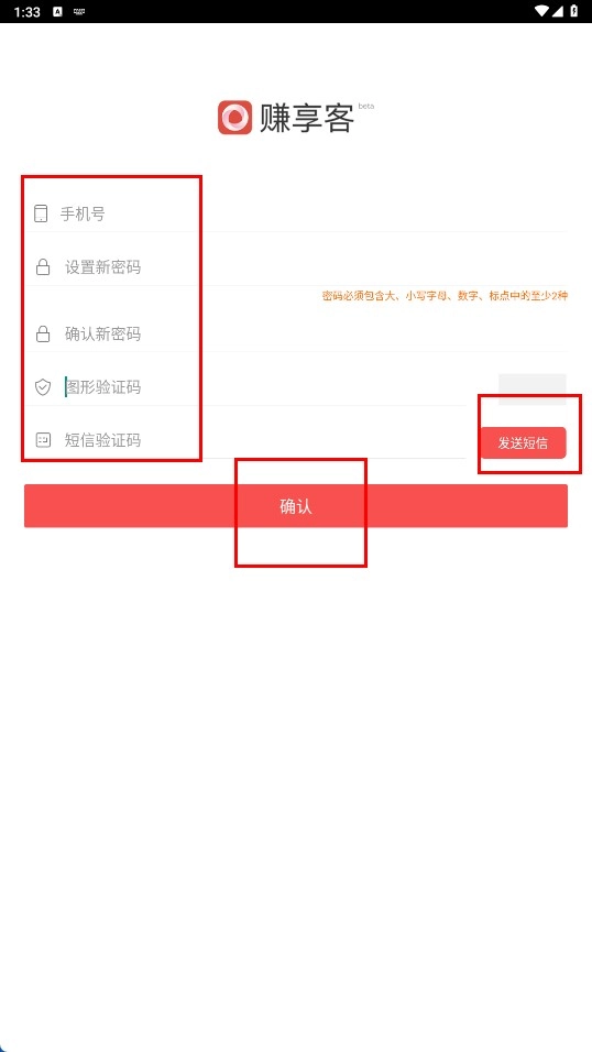 在赚享客的登录页面,输入手机号与密码,随后点击【登录】功能按钮。
