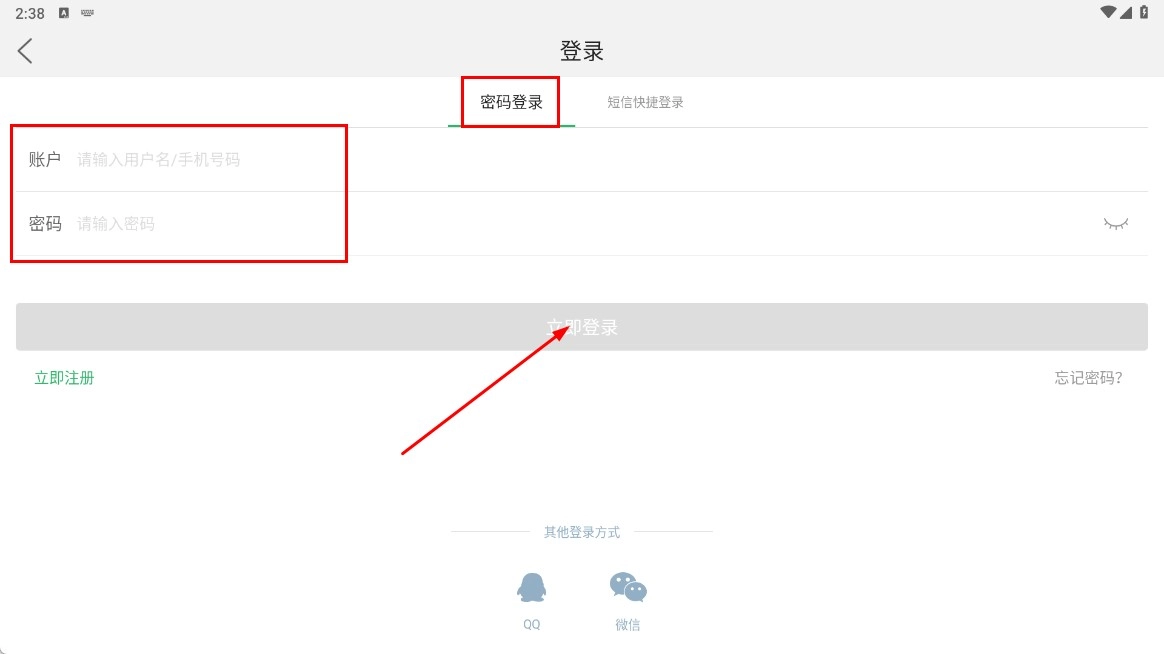 在登录页面,你可以选择【密码登录】的方式,输入对应的账户与密码后,点击【立即登录】这个功能按钮即可。