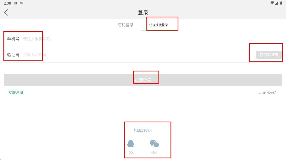 也可以选择【短信快捷登录】的方式,先输入手机号,再点击【获取验证码】功能按钮;此外,还能通过QQ、微信等其他登录方式完成登录操作。
