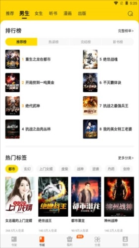 进入书城首页,这里推送了各种类型小说的精品佳作
