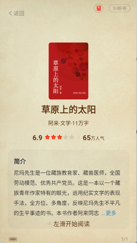 我们提供听书功能,用户只需挑选自己感兴趣的书籍,然后点击阅读页面上的耳机图标,就能开启听书模式了。