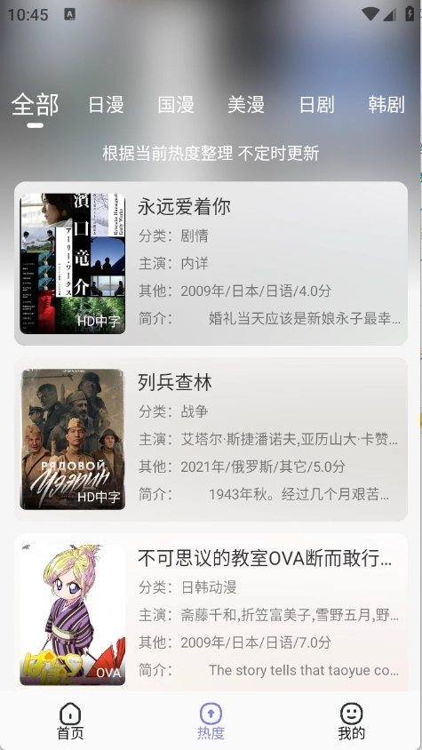 进入首页后,可以看到多种动漫类型,包括日漫、韩漫和美漫等。