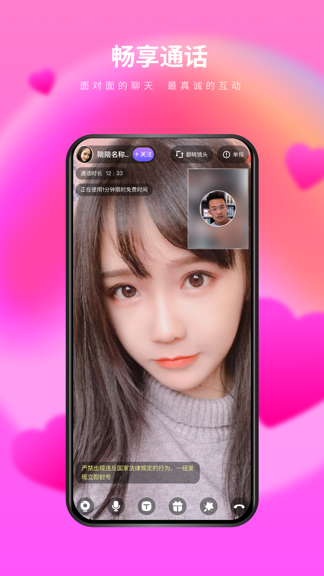 4、【轻松聊天】实时视频对话,一键互动,与心动的ta零距离邂逅心动。