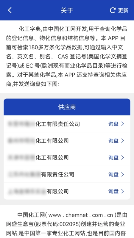 1、化工字典APP,由中国化工网开发,用于查询化学品的登记信息、物化信息和结构信息等。