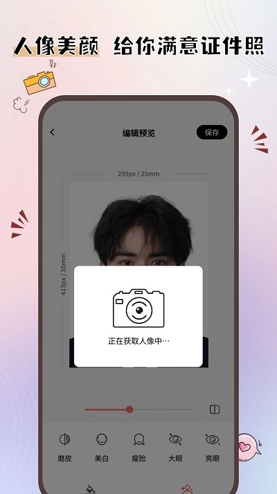 3、人像美,给你一张满意的证件照,拍完后直接保存分享,美更真实。