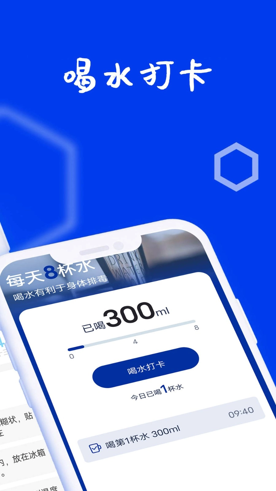 3、每日喝水记录,生成专属健康报表。